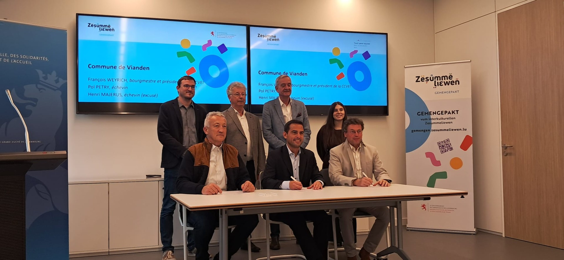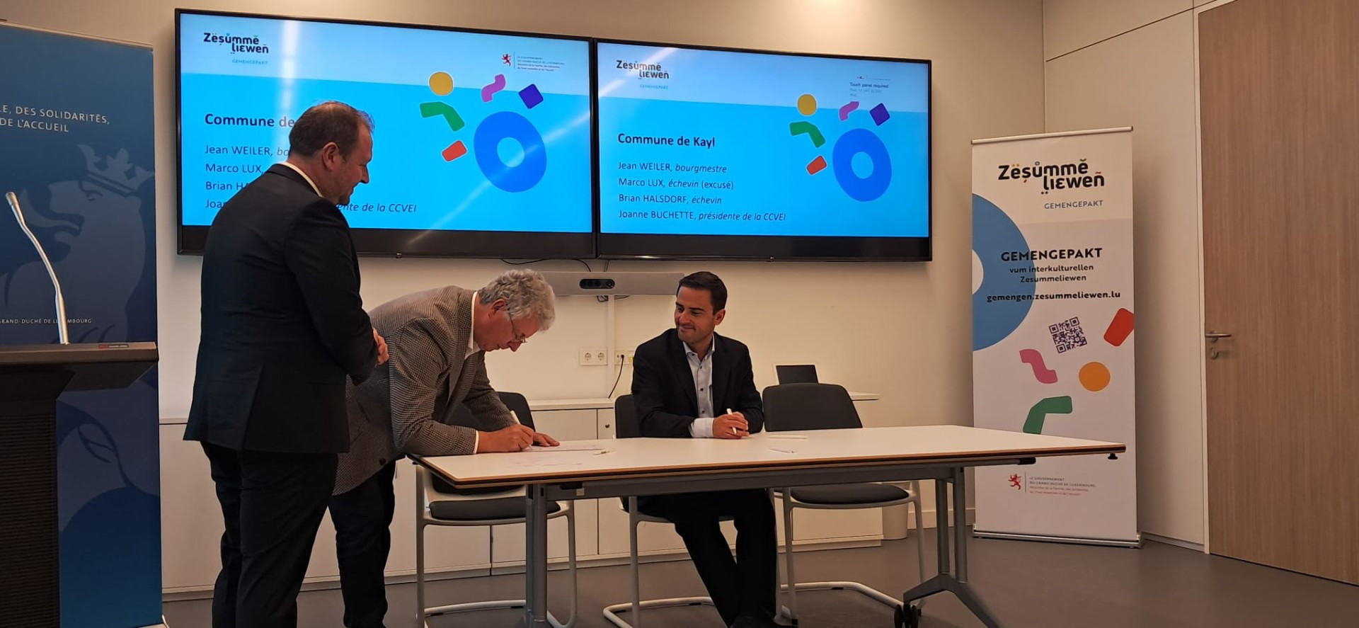 Le 22 octobre 2025, les communes de Kayl, Kiischpelt, Mersch et Vianden ont signé le « Gemengepakt vum interkulturellen Zesummeliewen » (pacte communal du vivre-ensemble interculturel) avec le ministre de la Famille, des Solidarités, du Vivre ensemble et de l'Accueil, Max Hahn, en présence du Président du SYVICOL, Emile Eicher.