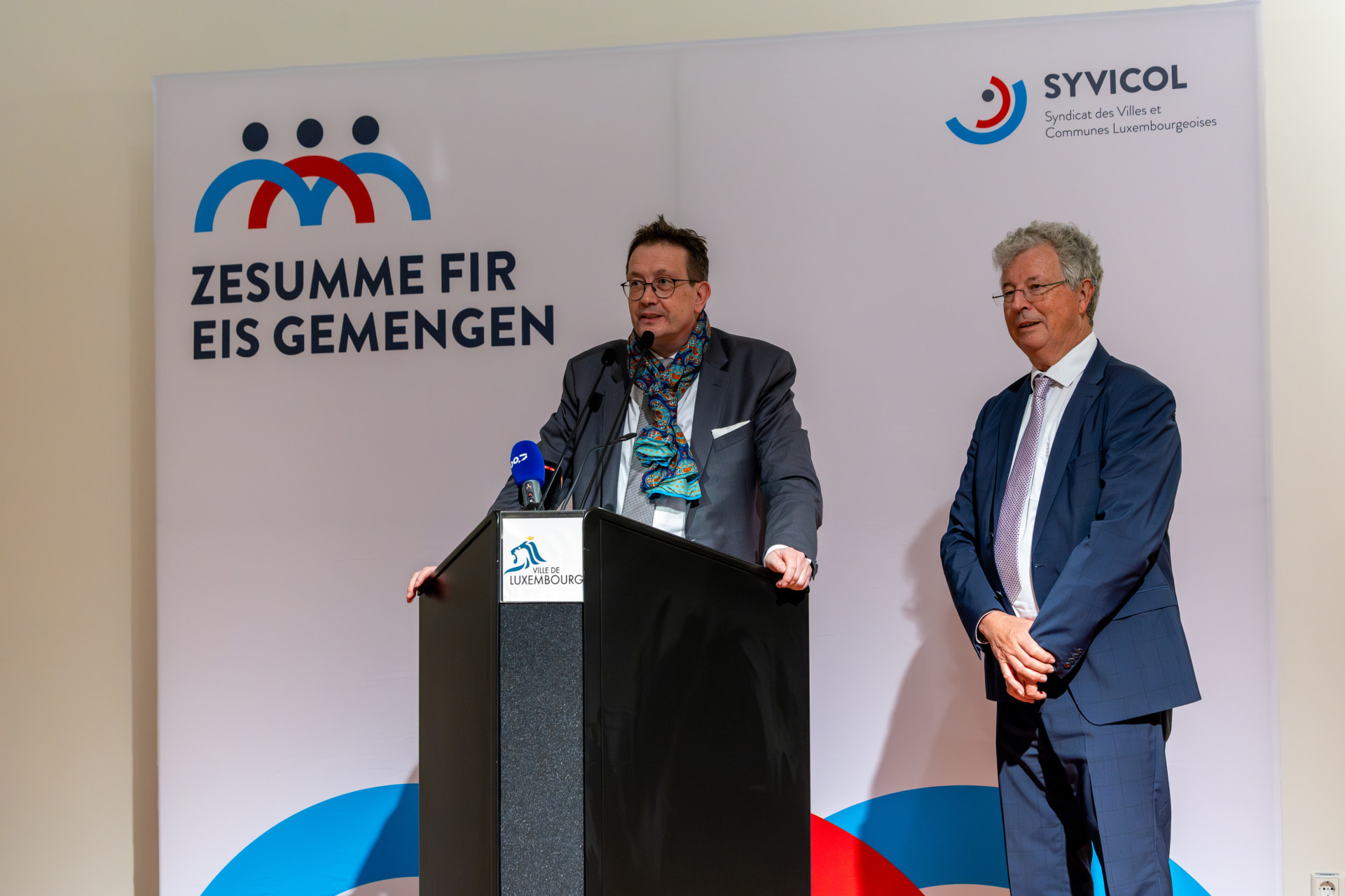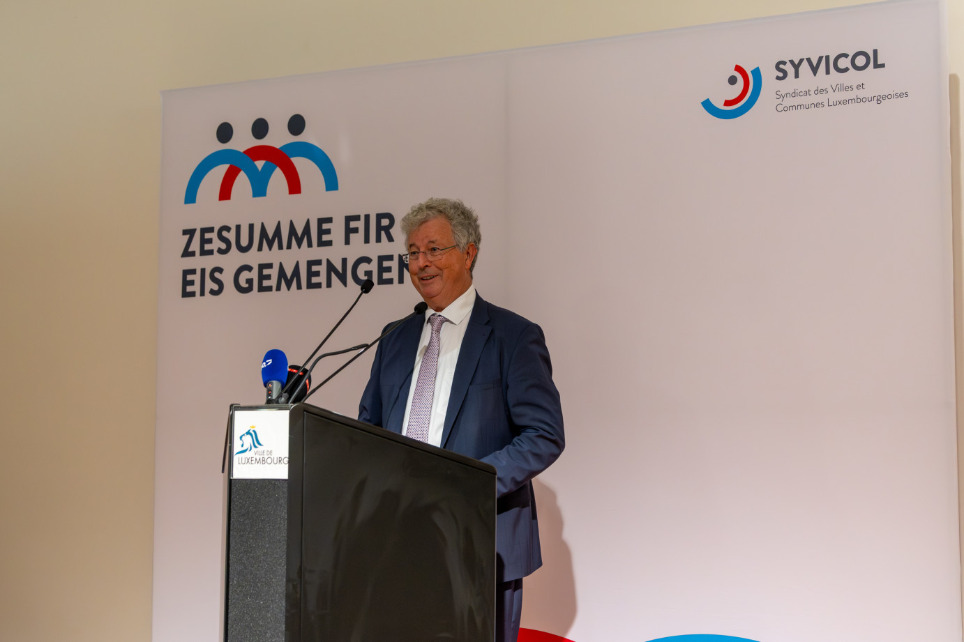 No enger Begréissungsusprooch duerch de Maurice Bauer, 1. Schäffe vun der Stad Lëtzebuerg, a Vertriedung vun der Buergermeeschtesch an 1. Vizepresidentin vum SYVICOL Lydie Polfer, huet de SYVICOL-President Emile Eicher fir d’éischt der verstuerwener fréierer Stater Buergermeeschtesch Colette Flesch geduecht an dobäi och hiren Engagement als Vizepresidentin vun der „Association des Villes et Communes Luxembourgeoises“, dem Virleefer vum haitegen SYVICOL, ervirgehuewen.
