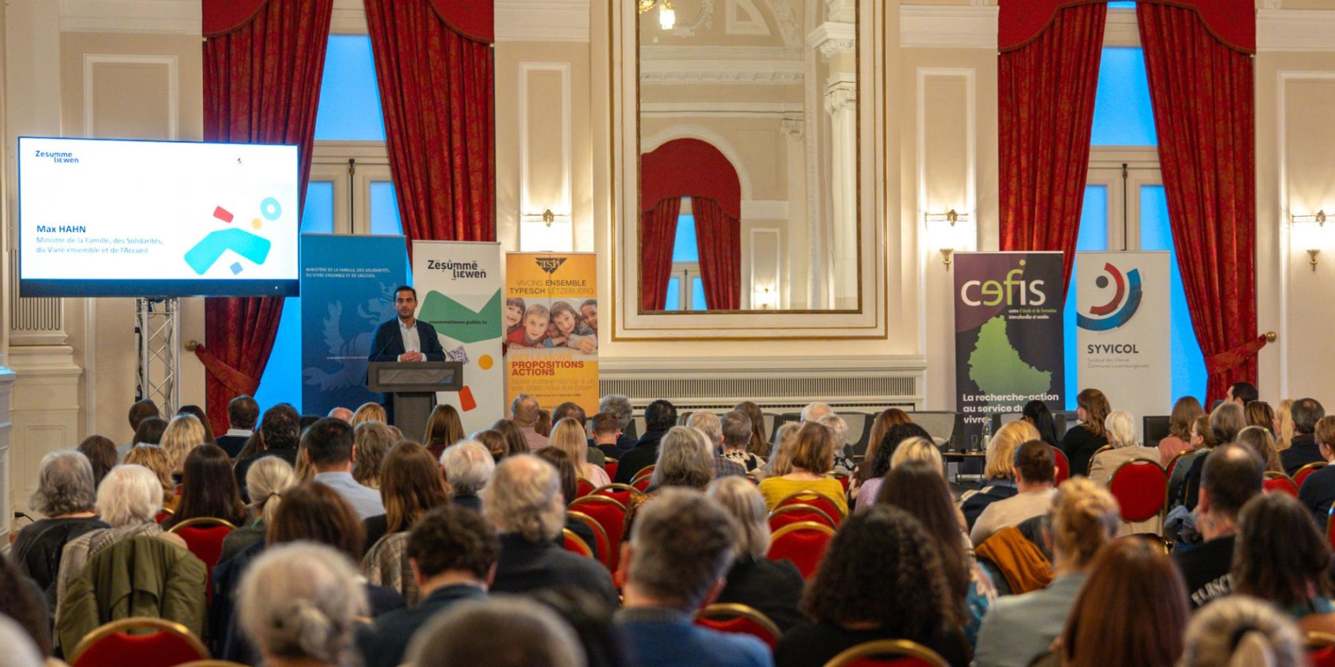 La séance a été ouverte par Max Hahn, ministre de la Famille, des Solidarités, du Vivre ensemble et de l'Accueil, suivi par un mot de bienvenue de Lydie Polfer, bourgmestre de la Ville de Luxembourg, de Corinne Cahen, échevine et présidente de la commission consultative du vivre-ensemble interculturel de la Ville de Luxembourg, et de Emile Eicher, président du SYVICOL.