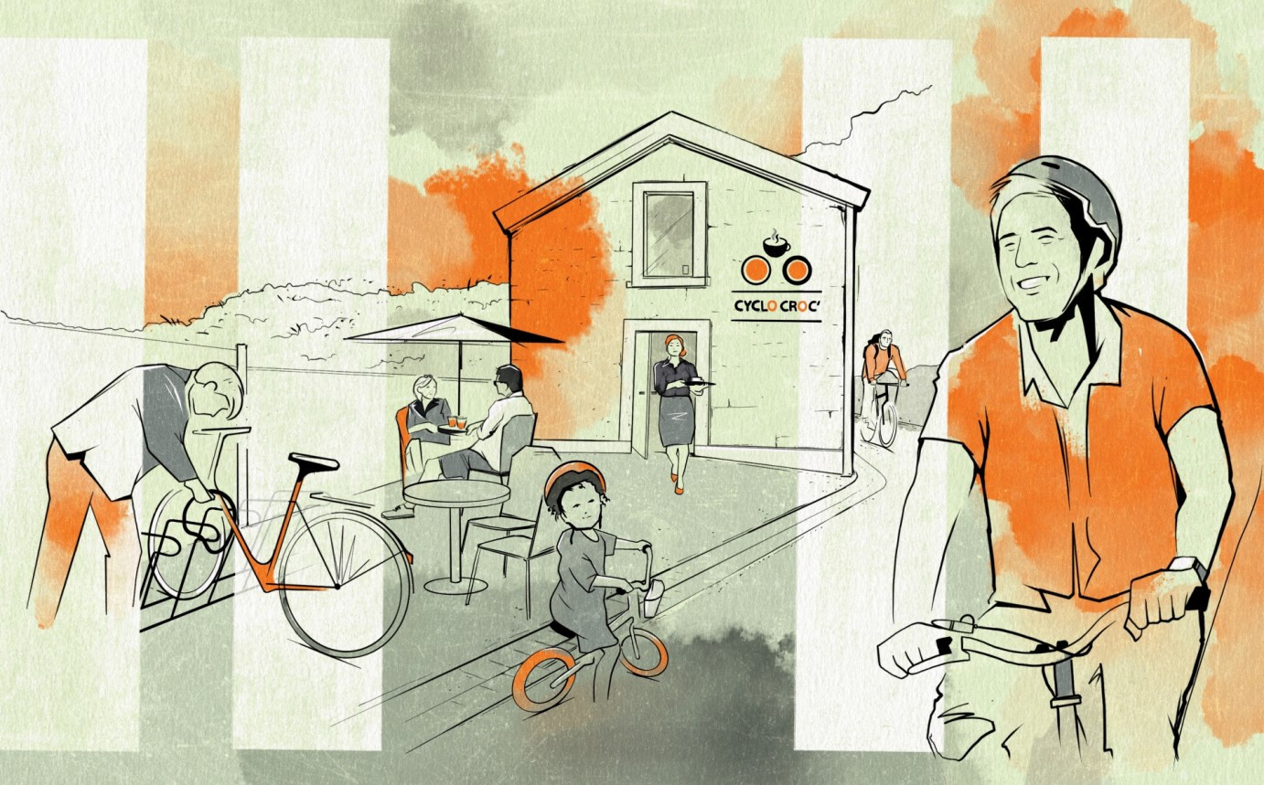C’est autour de ce bâtiment que la commune a décidé, dans le cadre de son projet Cyclo Croc’ Biissen, pôle de services pour la mobilité saine et durable, de créer un lieu de repos et de services pour personnes à pied et à vélo. Un cycliste y aura l’occasion de recharger les batteries de son vélo à assistance électrique pendant qu’il se repose ou se restaure sur l’une des trois belles terrasses. Les plus pressés pourront simplement remplir leur bidon au robinet installé à côté de la station de lavage pour bicyclettes. Une station de réparation de vélo est mise à disposition. Et les malchanceux ayant subi une crevaison ont moyen d’acheter une nouvelle chambre à air. Tout y est donc pour répondre aux besoins du cycliste.